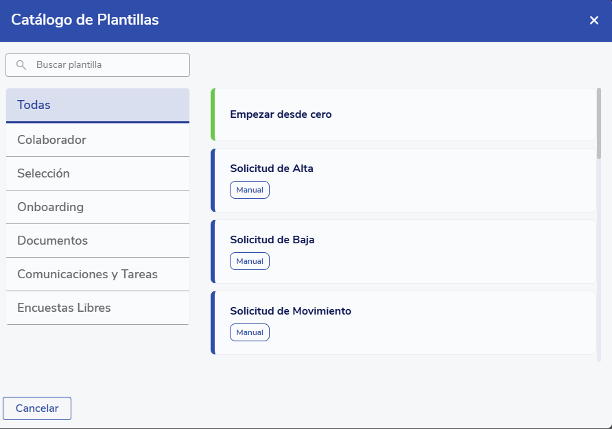 Note:This manual is focused exclusively on workflows that are started manually. The configuration of workflows that start automatically in response to events on the platform is detailed in the manual Automatizaciones - Manual de Configuración y Uso.