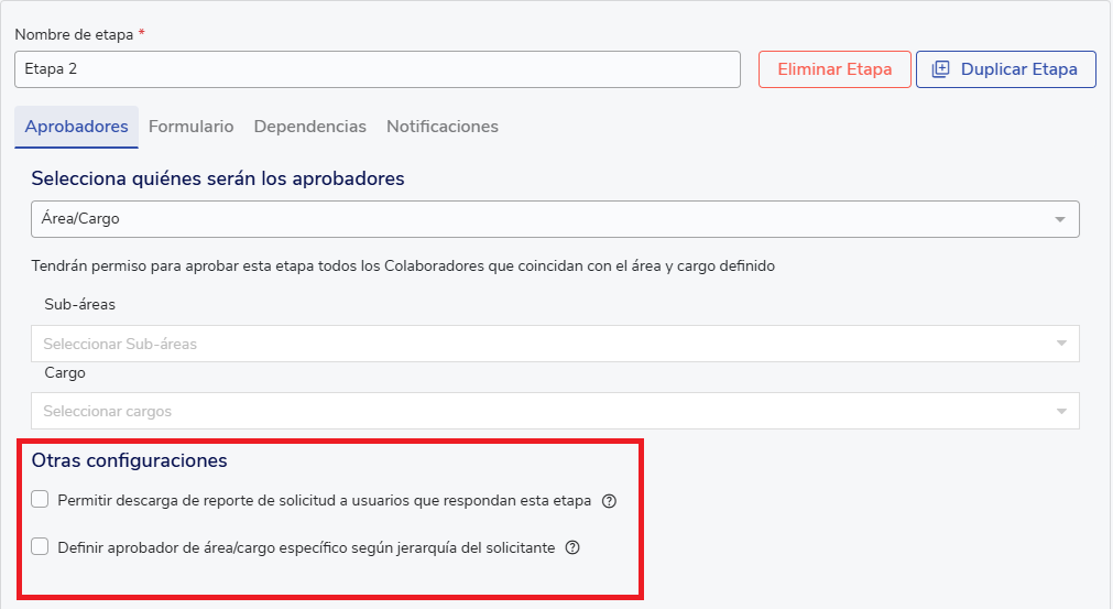 - Define specific area/position approver, so that the managerial approval for this stage corresponds to the requester's supervisor.