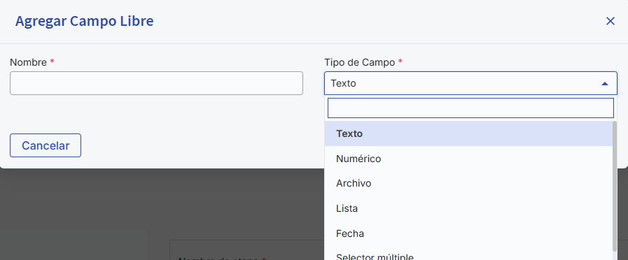 You can select fields from the list associated with the flow type oradd custom free fields(of type text, numeric, file, list, date or multiple choice).