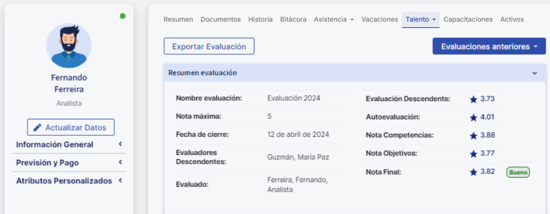 The article is aimed primarily at administrators of the "Gestión de Desempeño" module. To understand the calculations behind the evaluation when using the results methodology "Final score by evaluation type", it is essential to know how the performance evaluation was configured and the weights that were set.