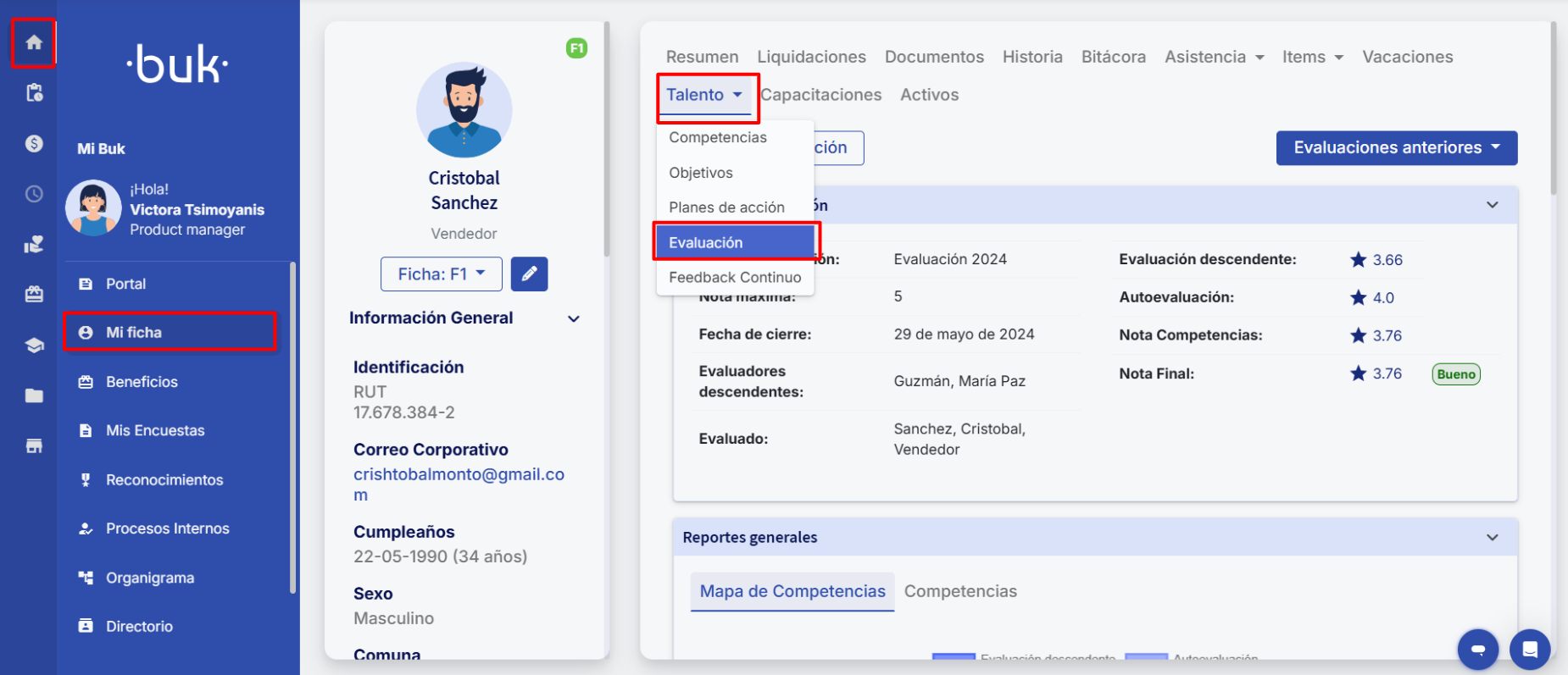 You will be directed to your score report. You can also access it by logging into your Buk account. Go to "My profile" and, on the "Talent" tab, you will find "Evaluation".