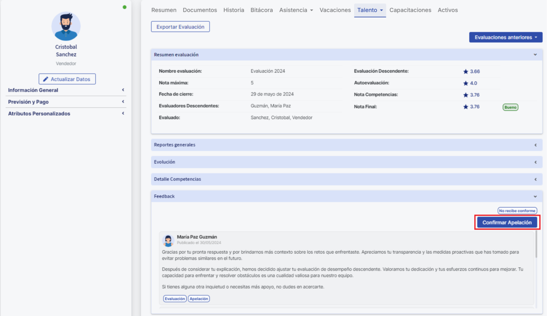 Important: Ten en cuenta que solo podrás apelar tu evaluación una vez. En caso de ser aceptada, solo se podrá modificar la nota de la evaluación descendente