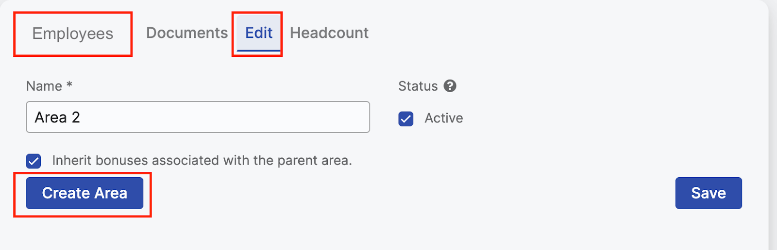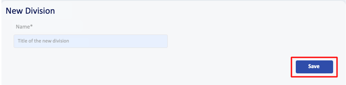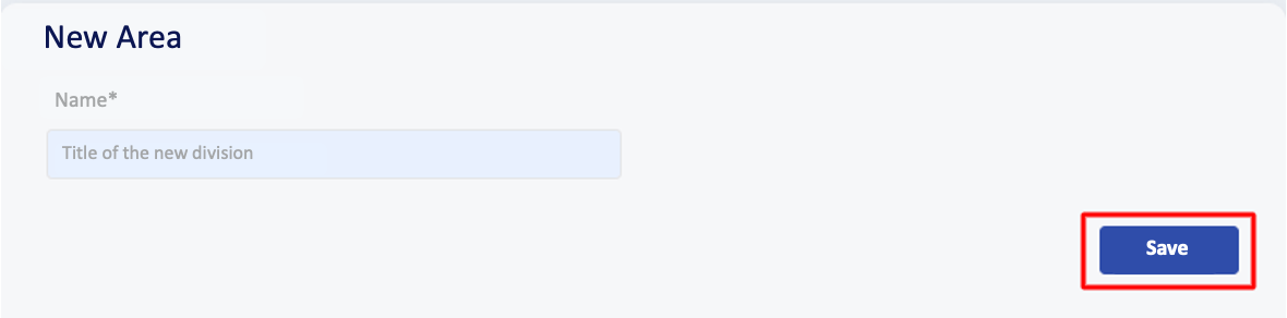 Once created, by clicking on the name of your Division, you will be able to create the corresponding areas in the "Edit" section. Then, select the "Create Area" option and fill in the name of the area in the corresponding box. Then, press "Save".