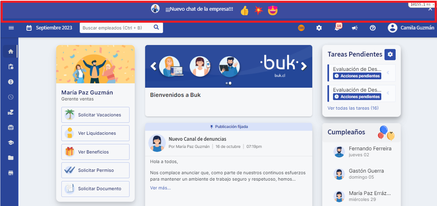 - Badge:The employee will notice a red icon in the chat bubble and, when clicking it, will be able to view the message within the conversation.