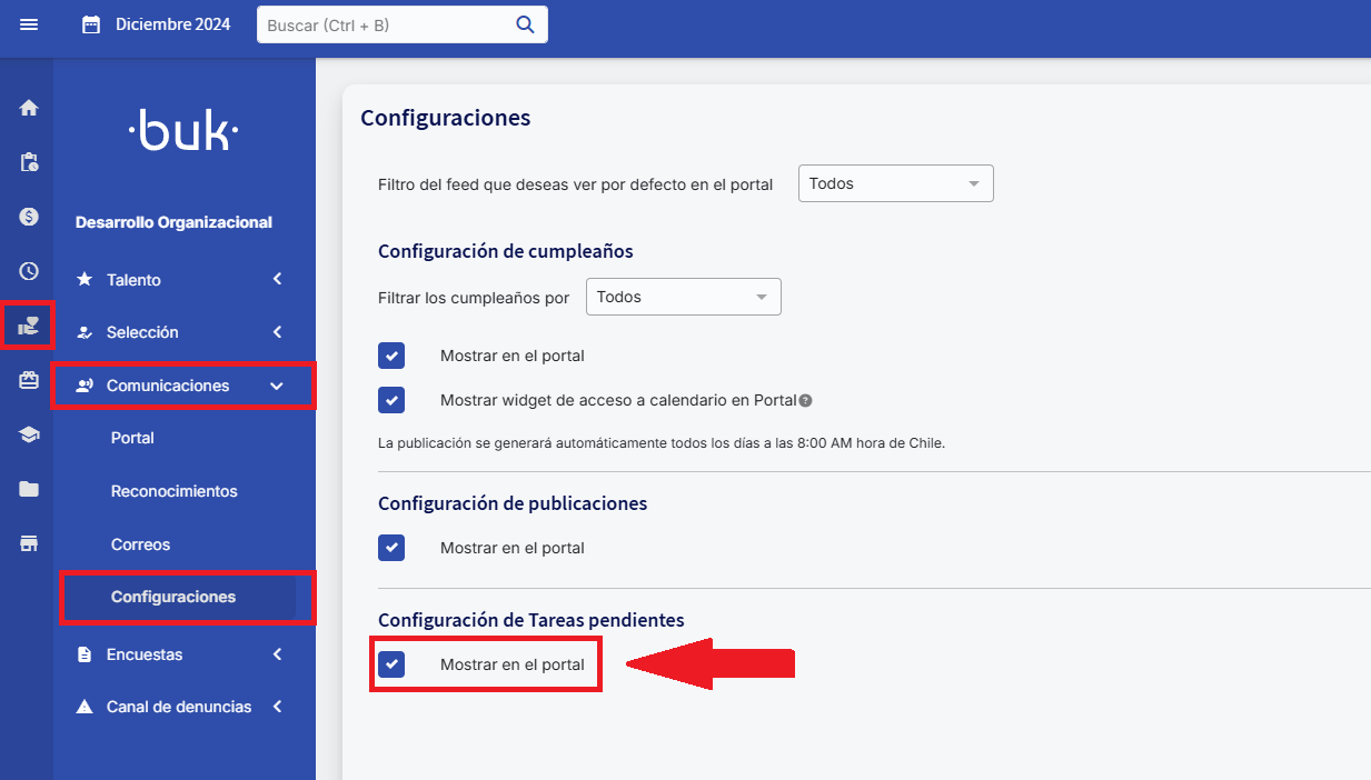 In thePending Taskssection, enable the option“Show on the portal”.