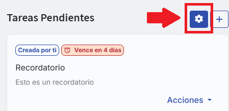 If you have the corresponding permissions, from the configuration icon (⚙️), available both in the pending tasks menu and in the shortcut, you can define which types of requests or notices you want your company to receive as pending tasks. This allows you to customize the experience according to what is most useful to you.