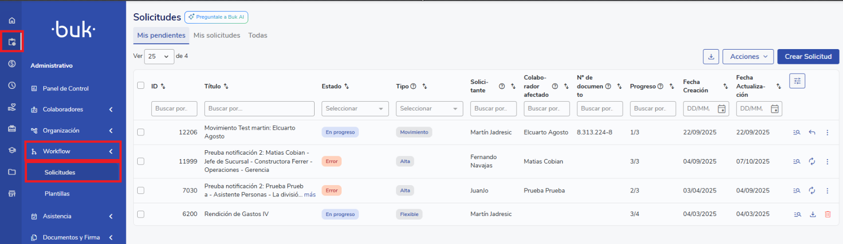 Go toAdministrative> Workflow > Requests