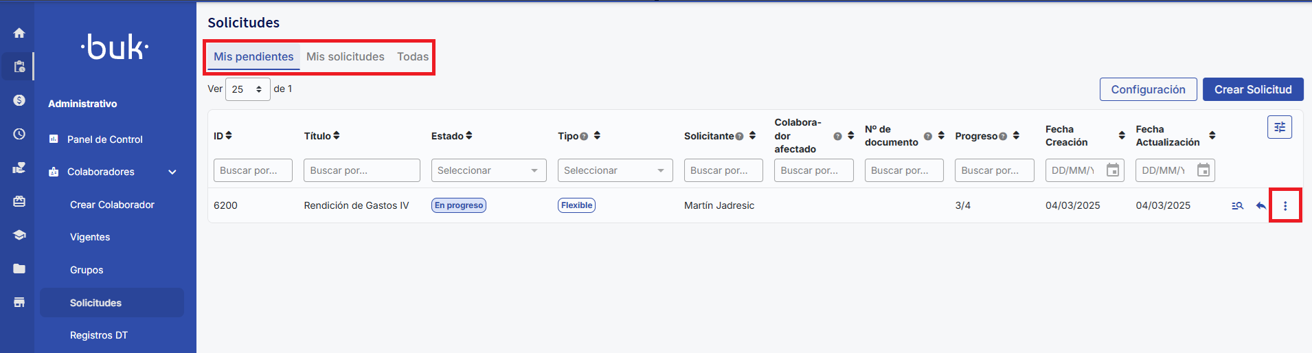 2. Locate the request in the tabsMy pending items,My requests,orAll