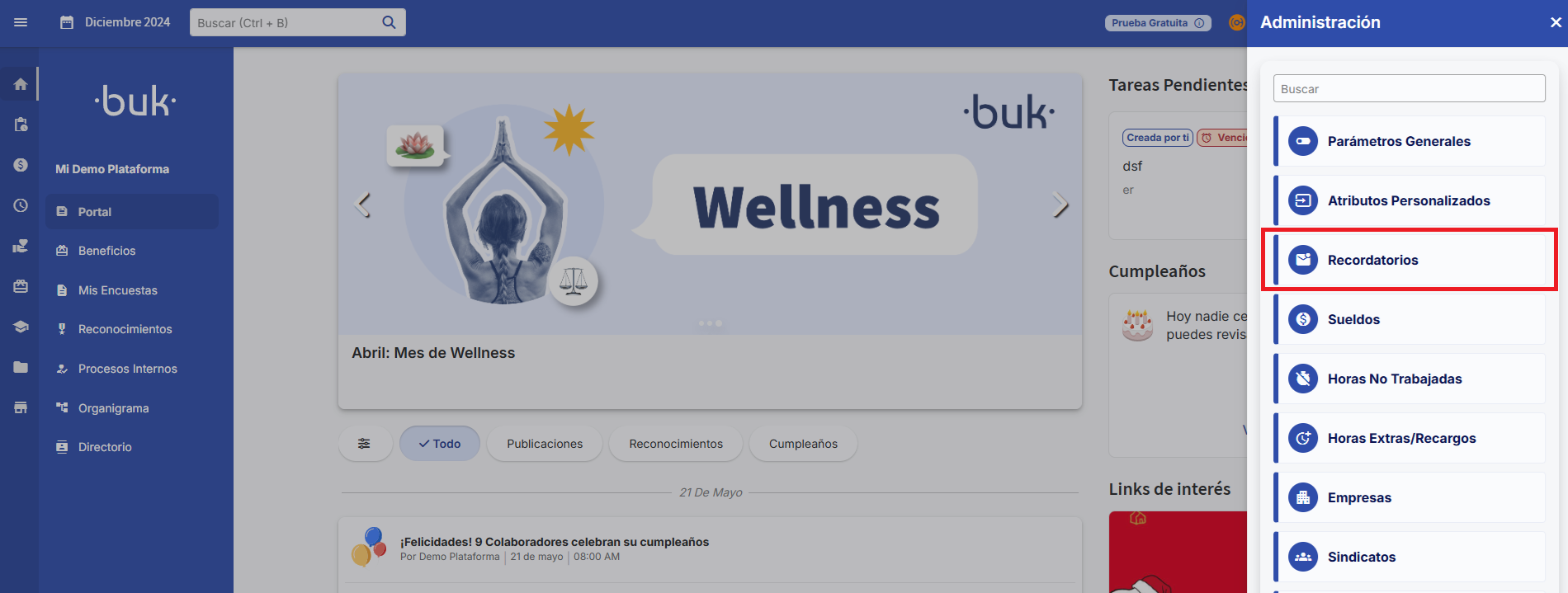- Go to the sectionRecordatorios.