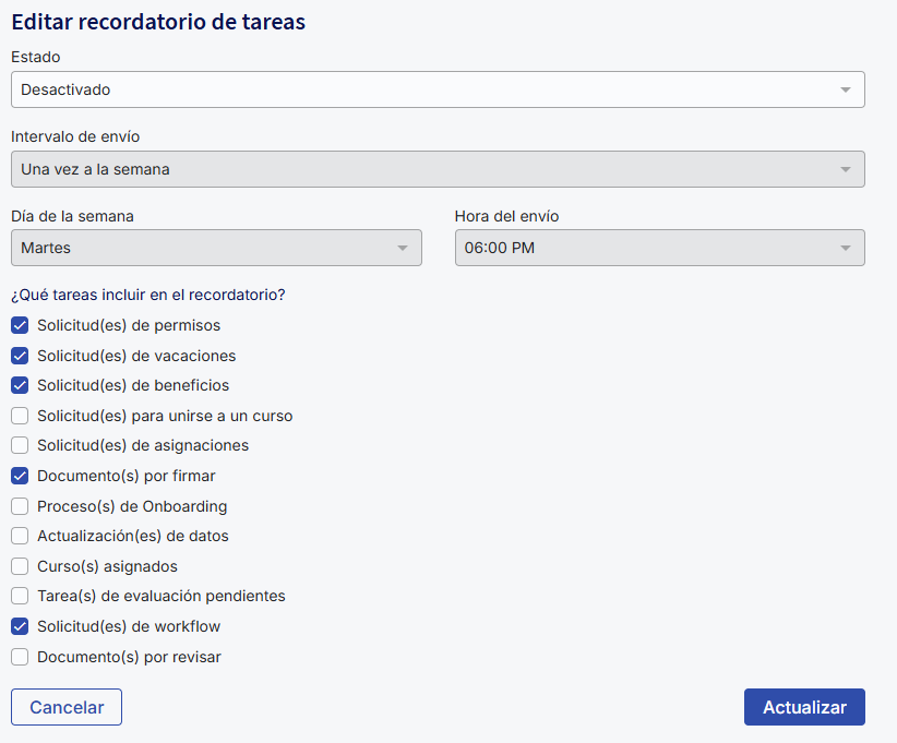 You can do this by enabling theweekly reminder emailfrom the Administración module.