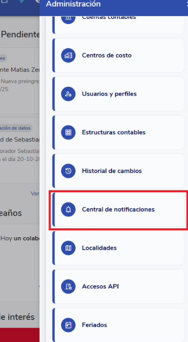 - Select theNotification Centeroption in the menu: