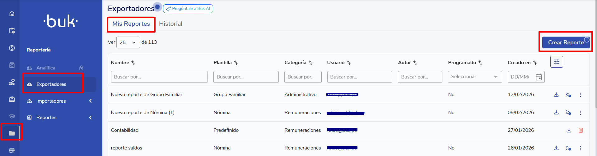 Primero, debes dirigirte al Módulo Reportaría >> Exportadores >> Mis Reportes >> Plantilla Crear Reporte.