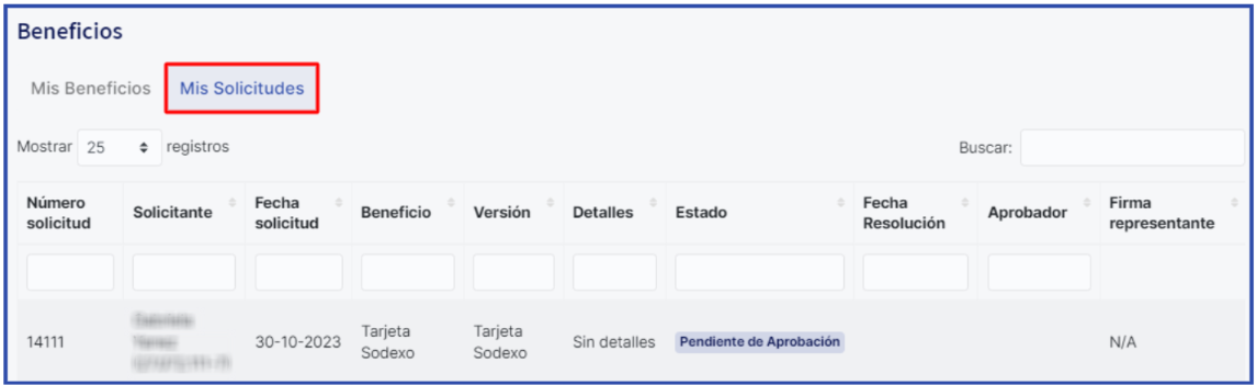 Puedes verificar el estado de tu solicitud en cualquier momento desde la sección: