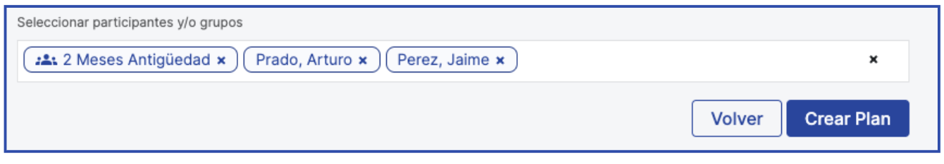 Si agregas una persona en específico, ésta siempre será parte de ese plan creado. En cambio, si seleccionas un Grupo, las personas que cumplan las condiciones de ese Grupo serán parte del plan y se actualizarán automáticamente.