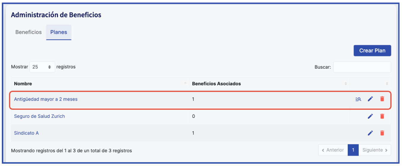 Una vez añadidos los participantes o grupos, presiona "Crear Plan". Así, los planes estarán disponibles para su edición o eliminación en la pestaña "Planes" para aquellos con permisos de gestión de beneficios.