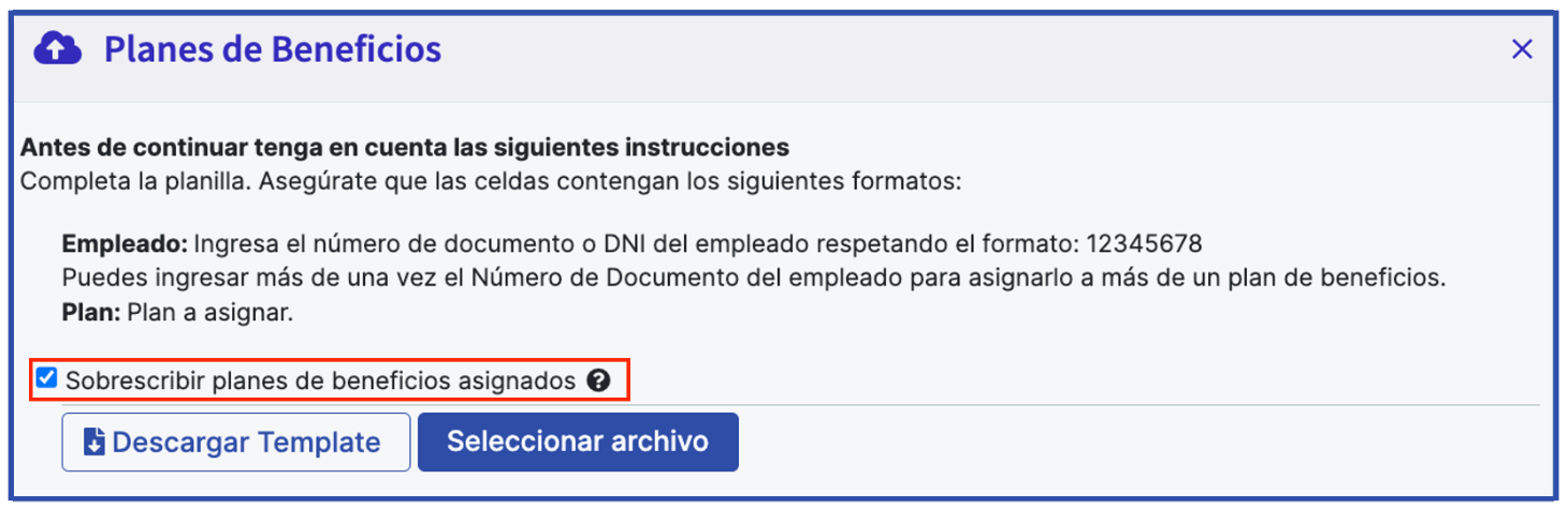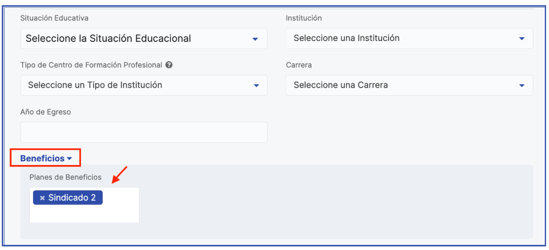 Luego, en la sección "Beneficios", elige el plan a asignar. Añadiendo de esta forma a tus colaboradores los estarías eligiendo de forma permanente y no en base a condiciones automáticas.