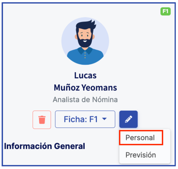 Cuando ya tengas tu plan de beneficios creado, puedes asignarlos a tus colabores de forma individual desde la ficha del colaborador dando clic en el ícono del lápiz y presionando la opción "Personal".