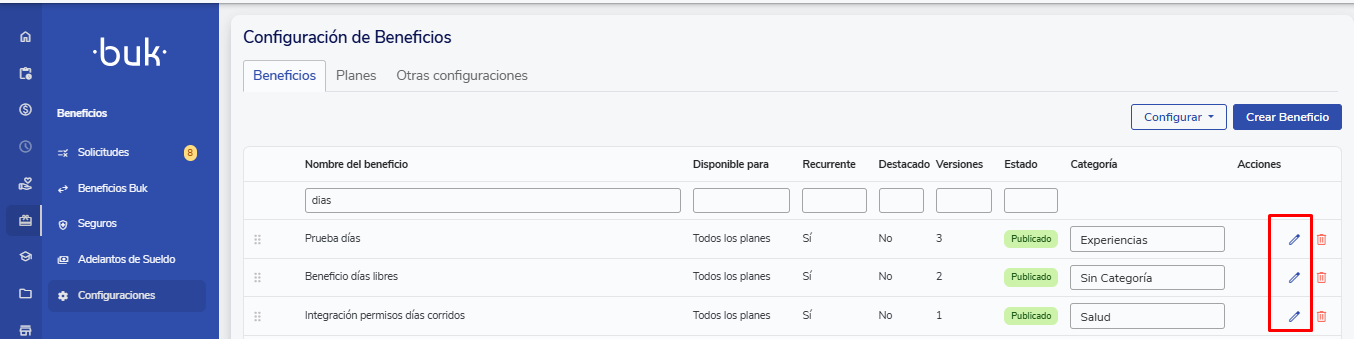 - ¿Cómo crear y administrar Categorías de beneficios?
