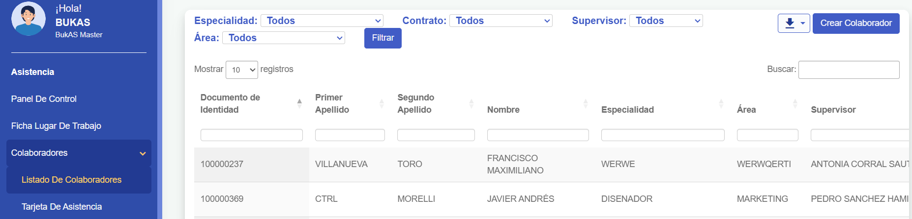 Con el módulo de asistencia podrás gestionar la información de tus colaboradores, distribuyéndolos según los recintos de trabajo correspondientes. Podrás crearlos en