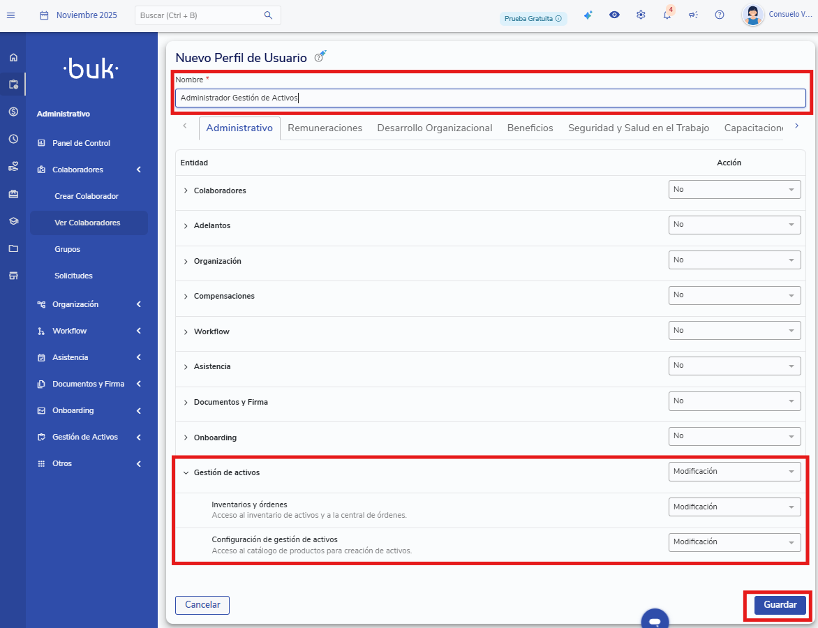 Luego, podrás asignar ese perfil al usuario que requiere administrar el módulo.
