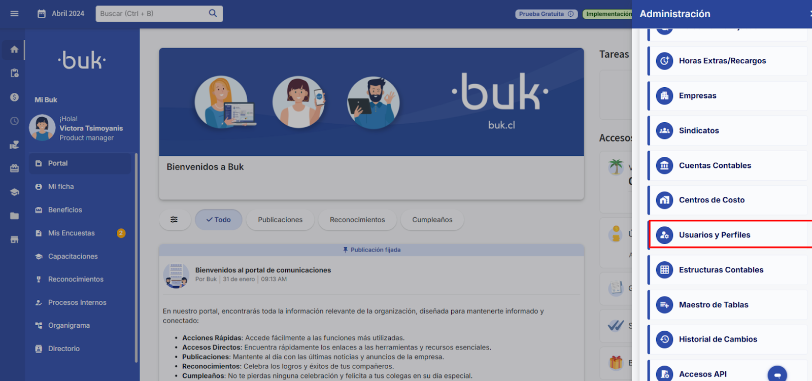 Una vez que hayas ingresado a la administración, debes seleccionar “Usuarios y Perfiles”