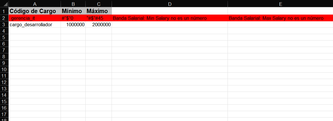 Revisión de la carga masiva de bandas salariales: