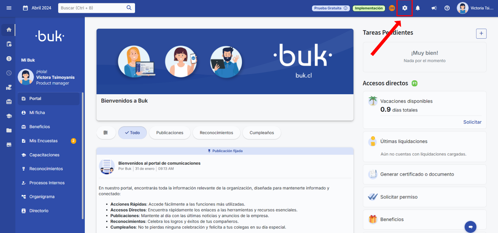 Primero, debes ingresar a la administración de la plataforma presionando el botón con forma de ⚙️.