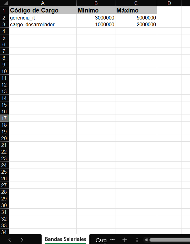 Carga masiva de Bandas Salariales