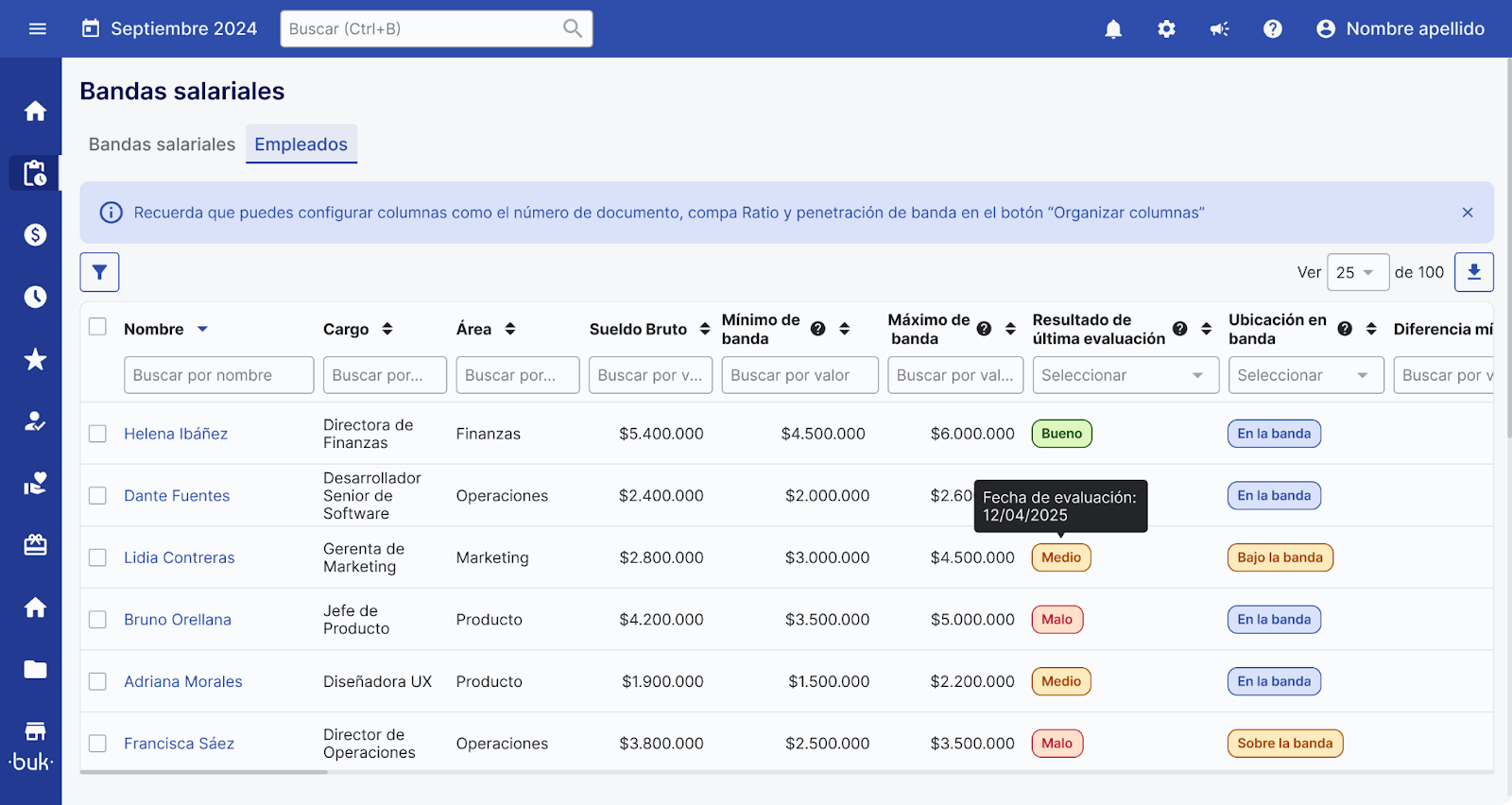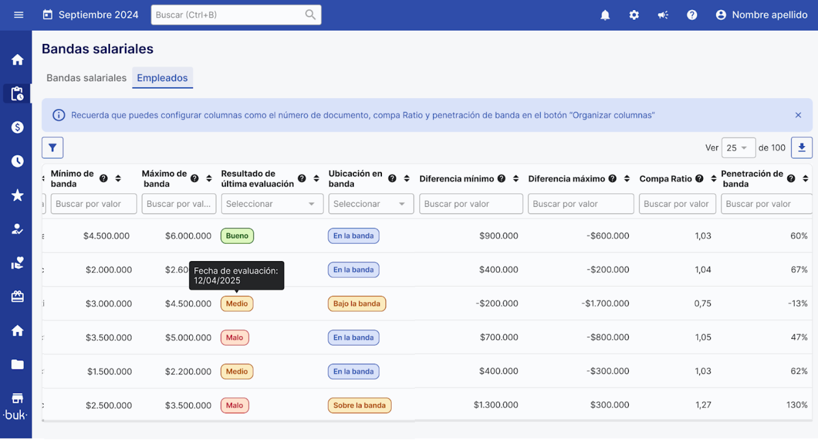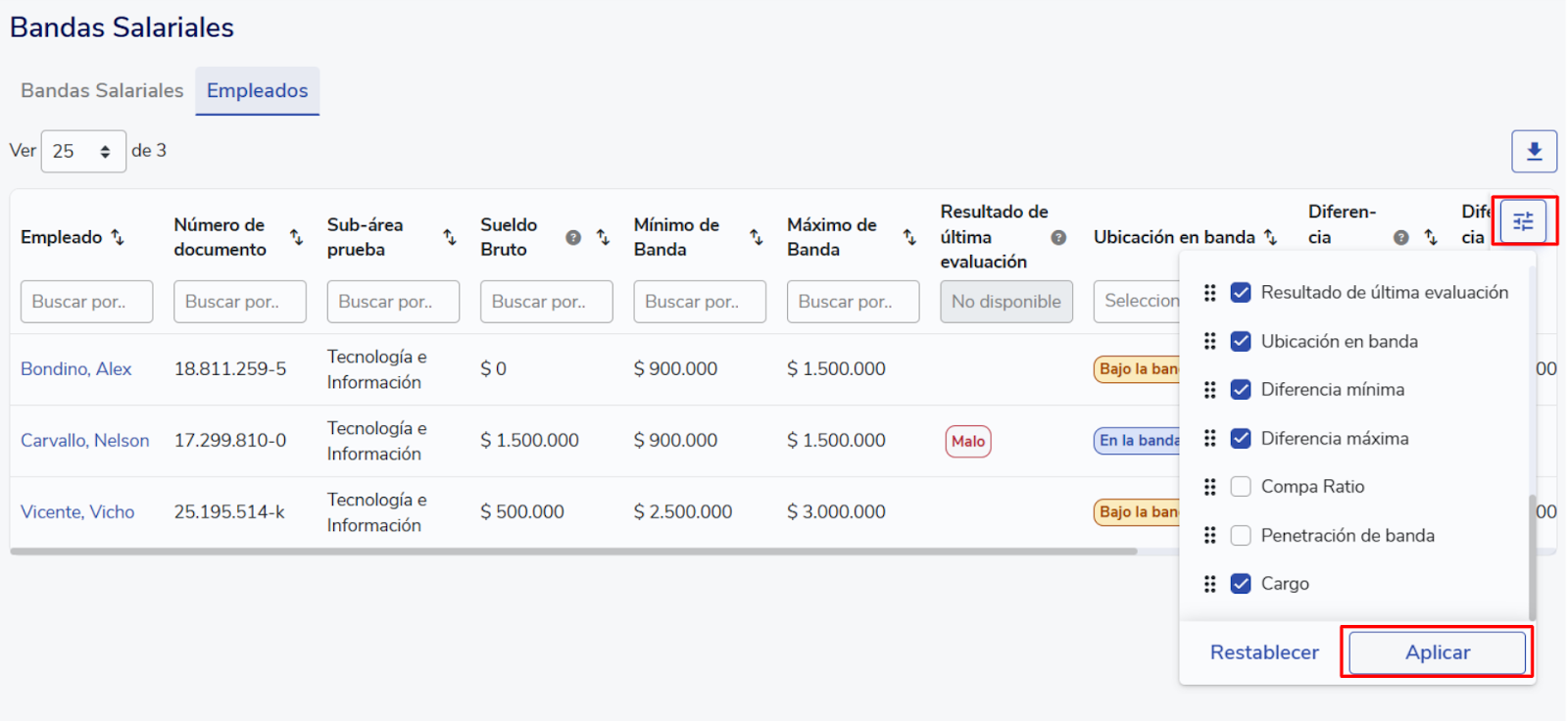 “Empleados”: despliega una nueva tabla comparativa que permite analizar en profundidad el sueldo de los colaboradores en relación con su banda salarial.