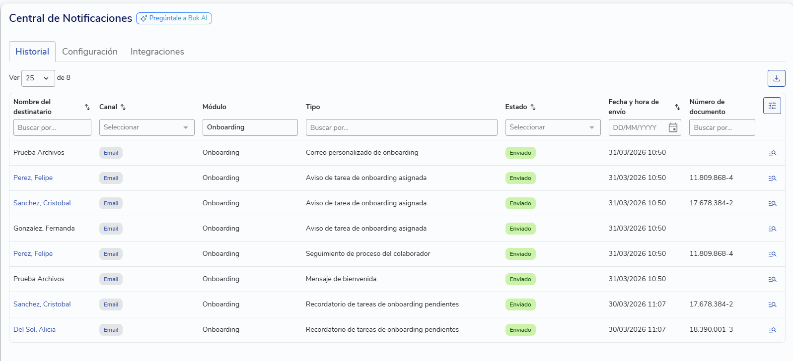 Si quieres validar si el correo con el pre ingreso salió correctamente, debes revisarlo en el historial de notificaciones.