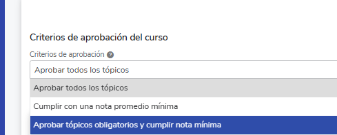 El participante deberá completar los tópicos requeridos y alcanzar la nota mínima configurada.