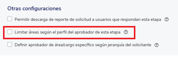 Cuando la casilla “Limitar áreas según el perfil del aprobador de esta etapa” está activada: