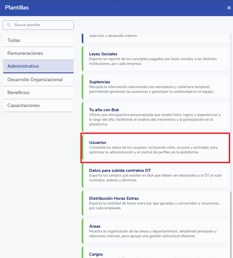 Escoge la plantilla llamada Usuarios dentro de "Administrativo".