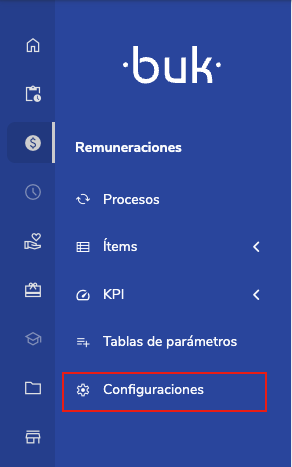 Para configurar tu módulo de remuneraciones debes dirigirte al menú lateral izquierdo, Remuneraciones/Nómina > Configuraciones