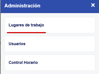 Debes dirigirte al botón de Administración de la parte superior derecha de la pantalla y, luego, presiona la opción "Lugares de trabajo" para acceder al listado correspondiente.