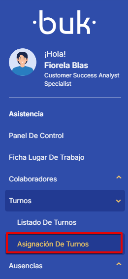 Para modificar turnos en fechas pasadas desde el calendario del módulo de Control de Asistencia, dirígete al menú de navegación ubicado en la parte lateral izquierda, ingresa a Turnos y luego selecciona Asignación de turnos.