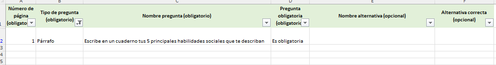 - No cambies los nombres de las columnas ni elimines los campos obligatorios.