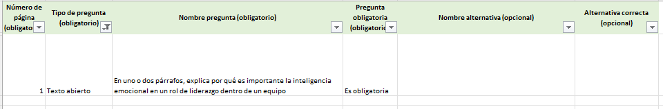 Asegúrate de trabajar con el formato correcto para cada tipo de pregunta (selección única, selección múltiple, texto abierto, párrafo).