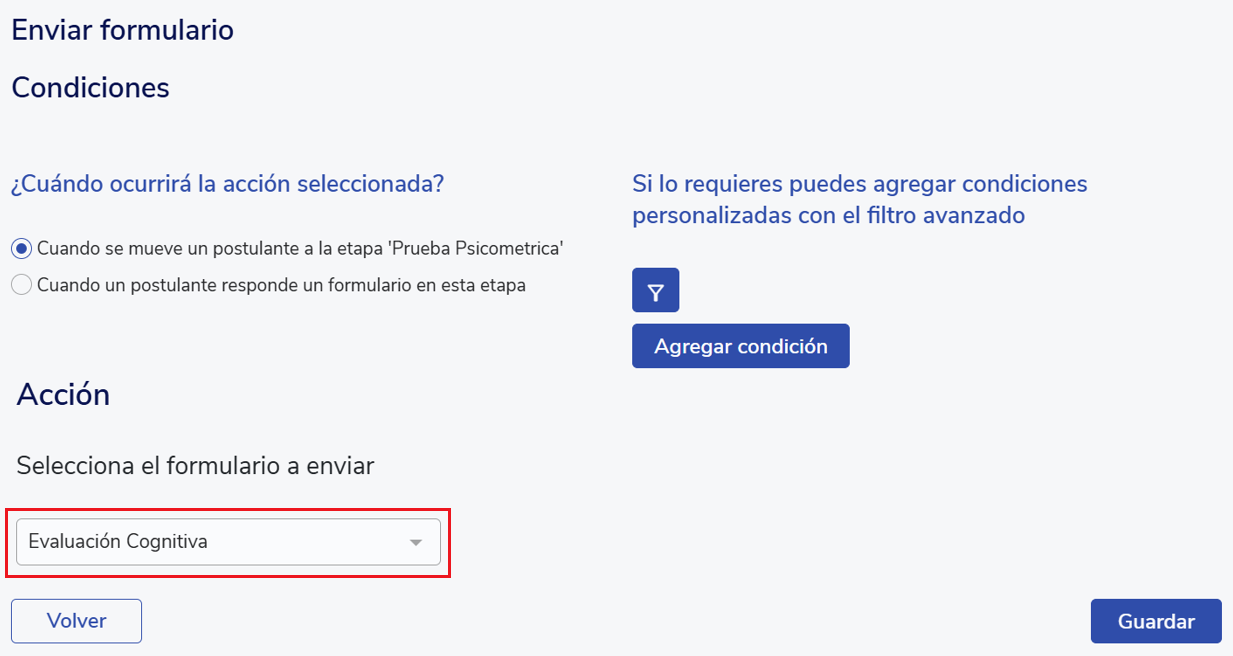 Una vez activa la regla, cada vez que muevas a un candidato a esa etapa, el sistema se encargará de enviarle la prueba de forma automática.
