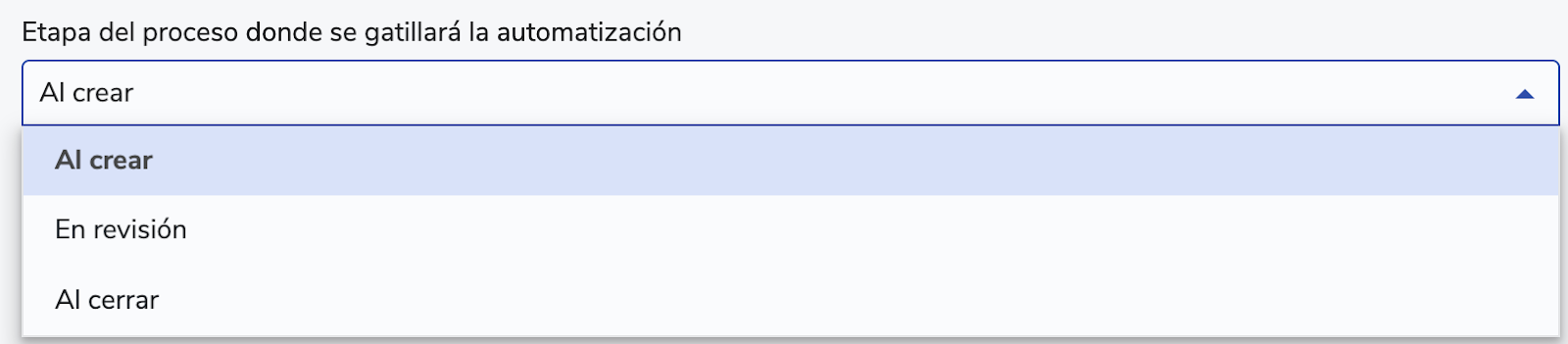 - Ingresa al proceso, y llévalo al estado definido en la automatización (al crear, en revisión o al cerrar).