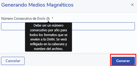 El número consecutivo ingresado no se almacena en el sistema ni en reportes; solo podrás visualizarlo en el encabezado del archivo descargado.