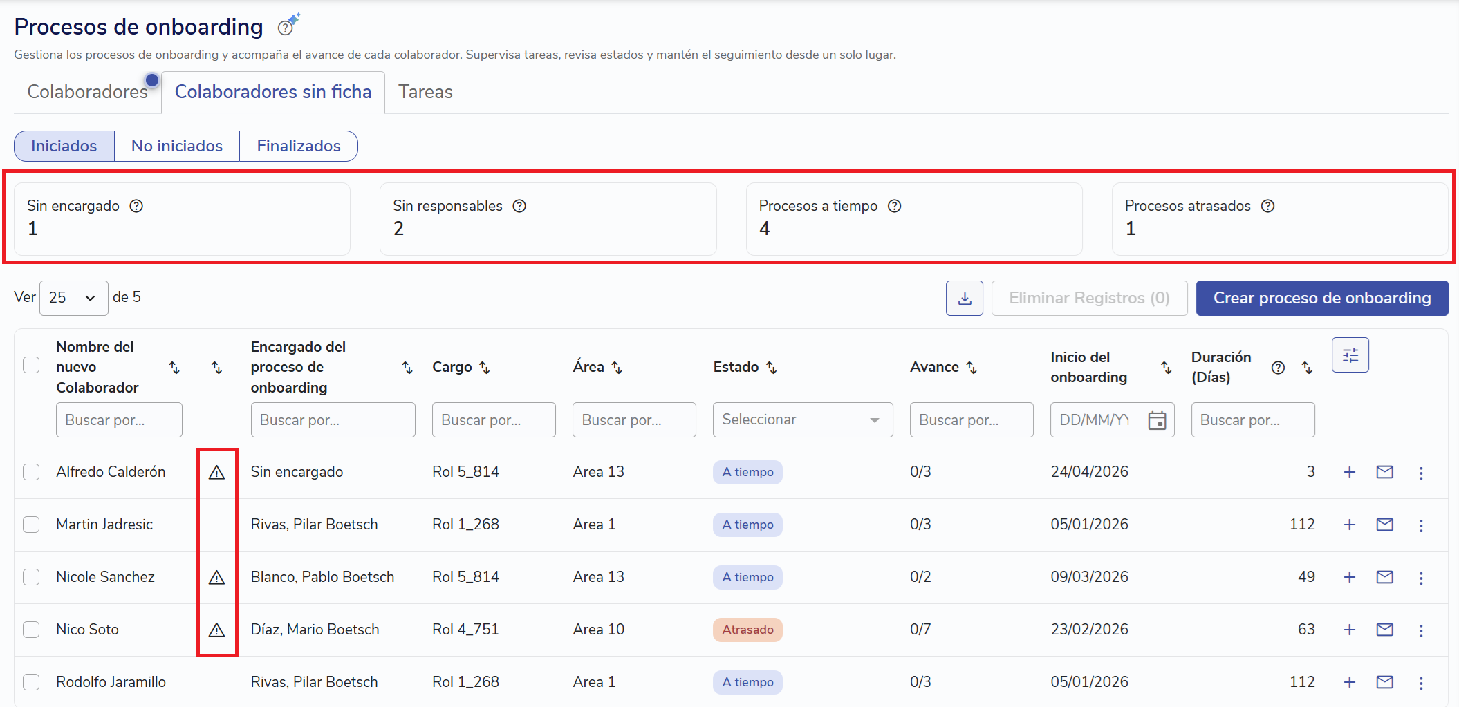 ¿Qué significan las alertas en Onboarding y cómo resolverlas?