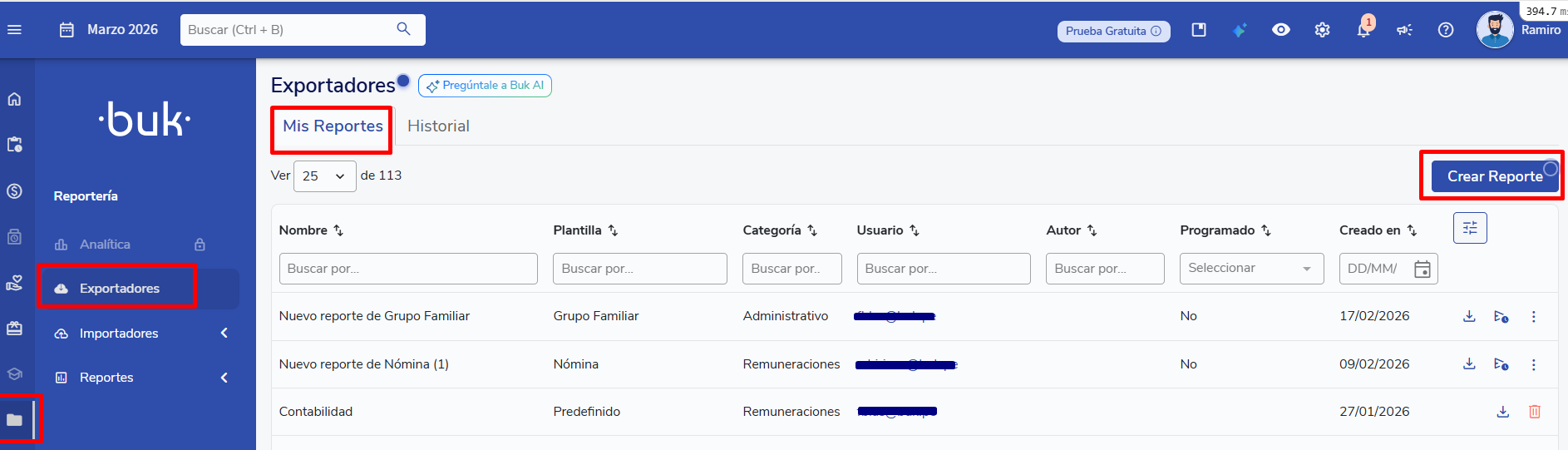 Primeiro, você deve ir para oMódulo Reporteria >> Exportadores >> Meus Relatórios >> Criar Relatório.