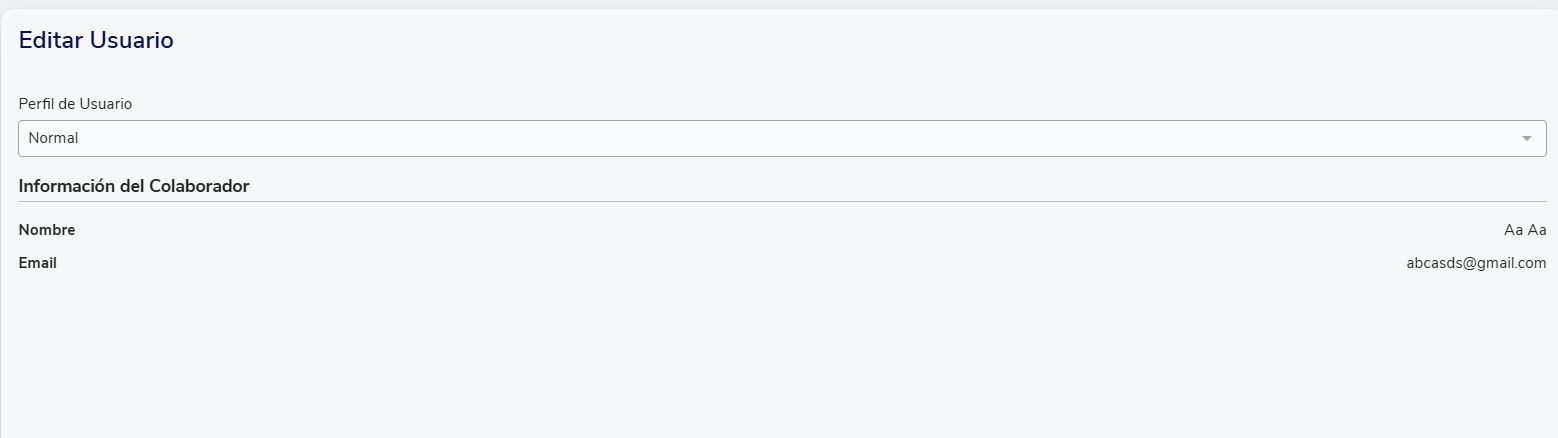 Perfil normal: Perfil base atribuído aos colaboradores. Pode ser configurado para definir quais informações serão vistas.