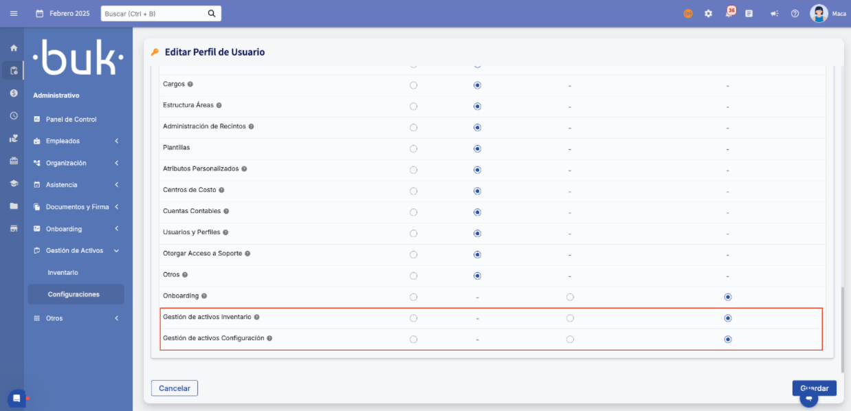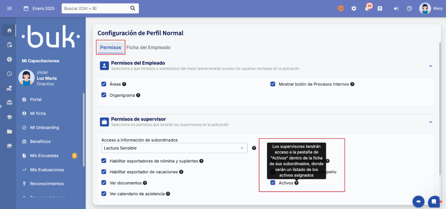 - Permissões para que o colaborador e o supervisor vejam a Aba de Ativos