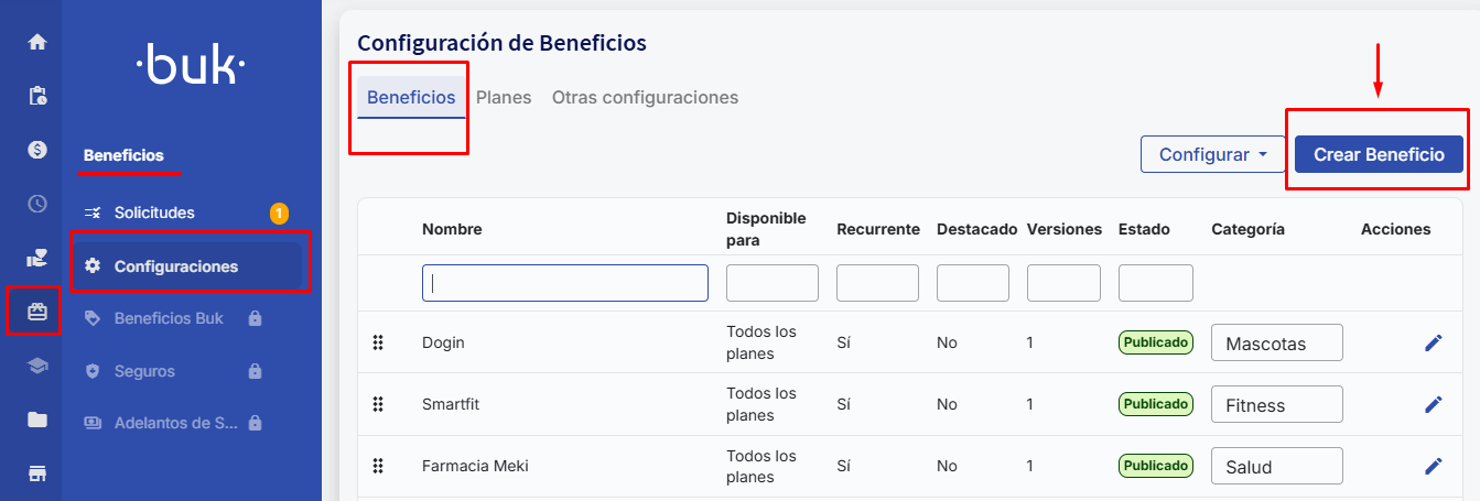 Vá paraConfiguração > Benefíciosno menu lateral.